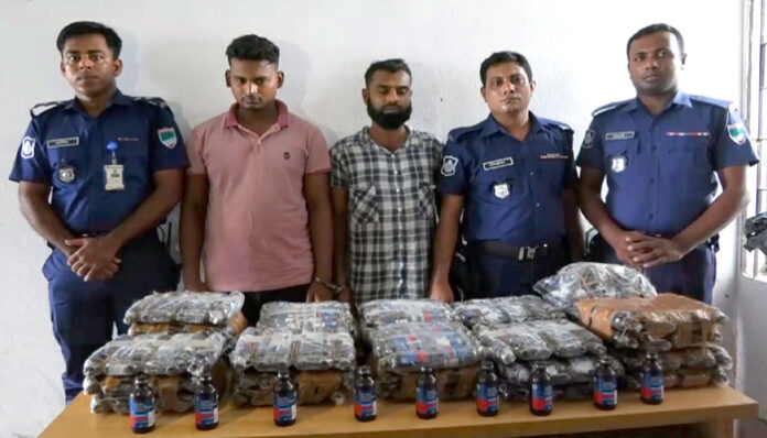 আতিকুর রহমান, ঝিনাইদহ প্রতিনিধিঃ ঝিনাইদহের মহেশপুর উপজেলার গুড়দাহ বাজার থেকে ৪০৬ বোতল ভারতীয় ফেনসিডিলসহ মাসুম মোড়ল ও ইমরান নাজির নামে দুই মাদক ব্যবসায়ীকে আটক করেছে পুলিশ। সোমবার রাতে সীমান্তবর্তী গুড়দহ বাজার থেকে তাদের আটক করা হয়।