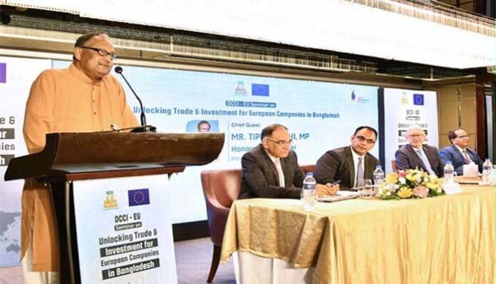 বুধবার (৪ অক্টোবর) ঢাকায় একটি হোটেলে ‘বাংলাদেশে পরিচালিত ইউরোপীয় কোম্পানীগুলোর বাণিজ্য ও বিনিয়োগ সম্প্রসারণ’ শীর্ষক সেমিনারে প্রধান অতিথির বক্তব্যে তিনি একথা বলেন।