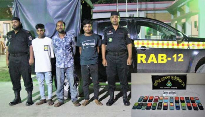 তিনি জানান, (০৪ অক্টোবর) রাত ০৮.৩০ ঘটিকার সময় র্যাব-১২’র সদর কোম্পানীর একটি চৌকষ আভিযানিক দল সিরাজগঞ্জের উল্লাপাড়া উপজেলার হাটিকুমরুল মোড় হতে ঢাকামুখী রাস্তার উপর একটি অভিযান চালিয়ে ২৫ টি নতুন চোরাই মোবাইল ফোন ও ২২টি মোবাইল ফোনের চার্জারসহ চোর চক্রের ০৩ জন সদস্যকে গ্রেফতার করা হয়।
