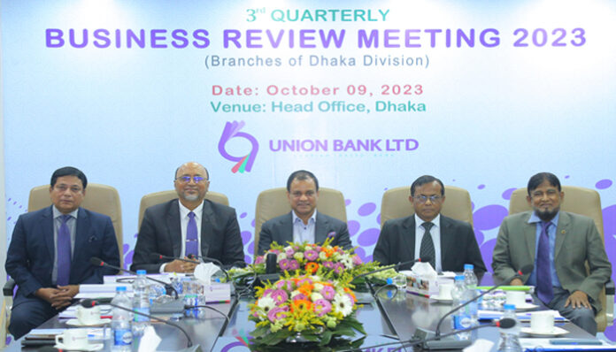 কর্পোরেট ডেস্ক: ইউনিয়ন ব্যাংক লিমিটেড এর ঢাকা বিভাগের শাখা সমূহের ৩য় ত্রৈমাসিক ব্যবসা পর্যালোচনা সভা-২০২৩ ব্যাংকের প্রধান কার্যালয়, গুলশান-১, ঢাকায় অনুষ্ঠিত হয়। প্রধান অতিথি হিসেবে উপস্থিত থেকে ৩য় ত্রৈমাসিক ব্যবসা পর্যালোচনা সভা উদ্বোধন করেন ব্যাংকের ব্যবস্থাপনা পরিচালক ও সিইও এ. বি. এম. মোকাম্মেল হক চৌধুরী।