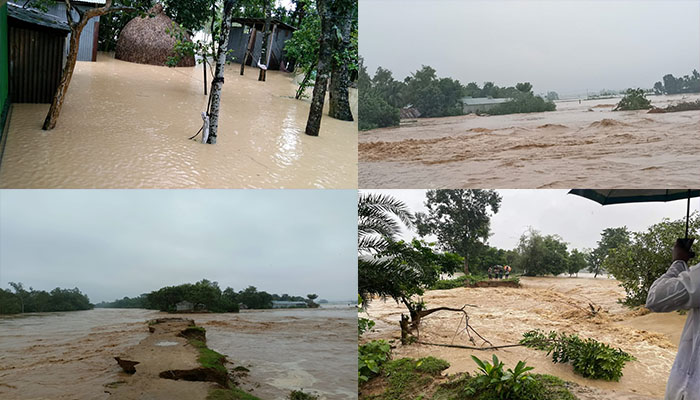 জানা গেছে, গত কয়েকদিনের টানা বর্ষণ ও ভারতের উজান থেকে নেমে আসা পাহাড়ি ঢলের পানিতে নতুন নতুন গ্রাম প্লাবিত হচ্ছে। নালিতাবাড়ী ও ঝিনাইগাতী উপজেলা সদরের পানি কিছুটা নেমে গেলেও নিম্নাঞ্চলের অন্তত দুইশত গ্রাম প্লাবিত হয়েছে। এতে ক্ষতিগ্রস্ত হয়েছে আমন আবাদ, মাছের ঘের ও সবজি আবাদ। এদিকে পাহাড়ি ঢলে শেরপুরের নালিতাবাড়ী, ঝিনাইগাতী ও নকলায় বৃদ্ধ ও নারীসহ সাতজনের মৃত্যু হয়েছে।