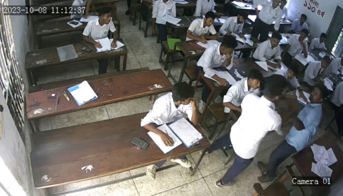 পরীক্ষা শুরুর এক ঘণ্টা ১১ মিনিটের সময় পরীক্ষার্থী সাইফুল আমিন শীর্ষ অন্যদের কাছ থেকে দেখে লিখছিল। প্রথমে তাকে নির্ধারিত আসন থেকে সরিয়ে সামনের একটি বেঞ্চে বসানো হয়। আবারও পেছনে ঘুরে অন্যের খাতা দেখে লেখছিল সে। এক পর্যায়ে পেছনের বেঞ্চে দুই হাত দিয়ে বসে ছিল সাইফুল।
