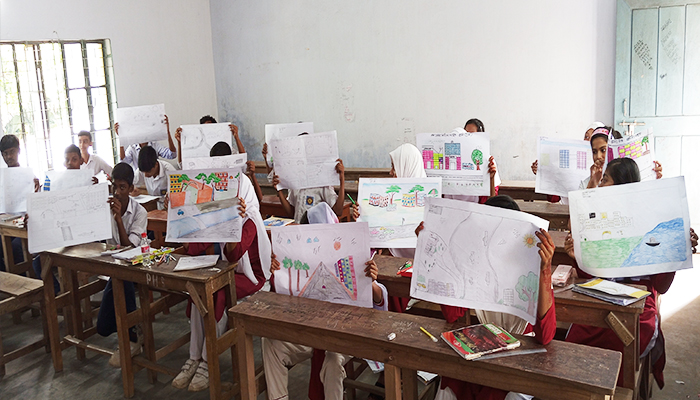 শিশুদের রঙ তুলিতে ফুটে উঠলো নিজ শহরের চিত্র