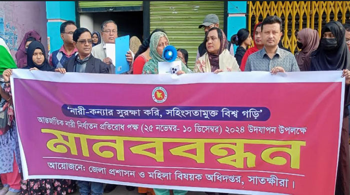 নিজস্ব প্রতিবেদক : নারী-কন্যার সুরক্ষা করি, সহিংসতা মুক্ত বিশ্ব গড়ি’” স্লোগানে আন্তর্জাতিক নারী নির্যাতন প্রতিরোধ ও মানবাধিকার দিবস উপলক্ষে মানববন্ধন কর্মসূচি পালিত হয়েছে। সোমবার (২৫ নভেম্বর) সাতক্ষীরা জেলা মহিলা বিষয়ক অধিদপ্তরের আয়োজনে ১৫ সংগঠনের শতাধিক নারী পুরুষের সমন্বয়ে এ মানববন্ধন কর্মসূচী পালিত হয়।