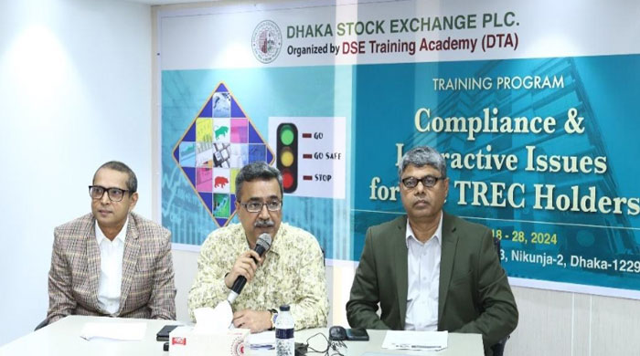 এক্ষেত্রে ব্রোকারেজ হাউজের সিইও, সিএফও, কমপ্লায়েন্স অফিসার ও অনুমোদিত প্রতিনিধিদের অনেক গুরুত্বপূর্ণ ভূমিকা রয়েছে। বিশেষ করে অনুমোদিত প্রতিনিধিদের কমপ্লায়েন্সের সকল নির্দেশনা সঠিকভাবে মেনে চলে লেনদেন সম্পন্ন করতে হবে। আপনারা হচ্ছেন বাজারের মূল সহায়ক শক্তি৷ ডিএসই’র ট্রেনিং একাডেমি কর্তৃক আয়োজিত ৪ (চার) দিনব্যাপী “Compliance & Interacting Issues for the TREC holders” শীর্ষক প্রশিক্ষণ কর্মশালার আজ (২৮ নভেম্বর) সমাপণী দিন।
