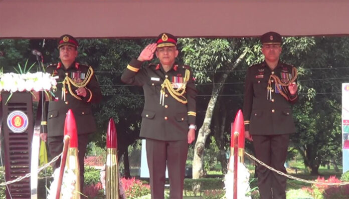 গাজীপুর প্রতিনিধি : গাজীপুরের রাজেন্দ্রপুর সেনানিবাসস্থ অর্ডন্যান্স সেন্টার এন্ড স্কুলে রিক্রট ব্যাচ ২০২৩ এর সেনাবাহিনী প্রধান কুচকাওয়াজ অনুষ্ঠিত হয়েছে।