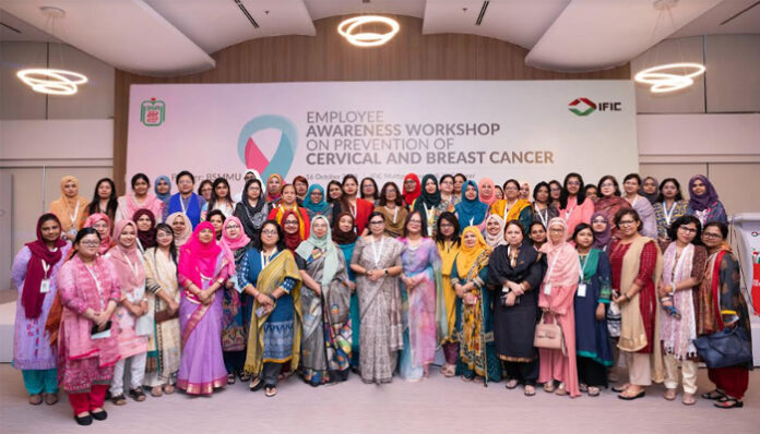 কর্পোরেট ডেস্ক: মুখ ও স্তনক্যান্সার প্রতিরোধে নারীসহ কর্মীদের মধ্যে সচেতনতা বৃদ্ধির লক্ষ্যে একটি কর্মশালার আয়োজন করেছে আইএফআইসি ব্যাংক।