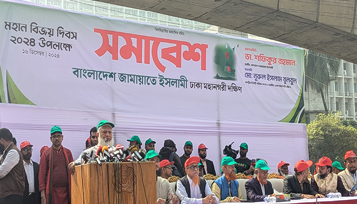 সোমবার (১৬ ডিসেম্বর) সকালে বাংলাদেশ জামায়াতে ইসলামী ঢাকা মহানগরী দক্ষিণের উদ্যোগে মহান বিজয় দিবস উপলক্ষে পল্টন মোড়ে অনুষ্ঠিত সমাবেশে প্রধান অতিথির বক্তব্যে তিনি এসব কথা বলেন।