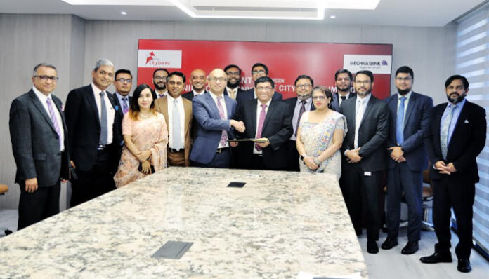 সিটি ব্যাংকের ব্যবস্থাপনা পরিচালক ও সিইও মাসরুর আরেফিন ও মেঘনা ব্যাংকেরব্যবস্থাপনা পরিচালক ও সিইও সোহেল আর কে হুসেইন নিজ নিজ প্রতিষ্ঠানের পক্ষে চুক্তিপত্রে স্বাক্ষর করেন।