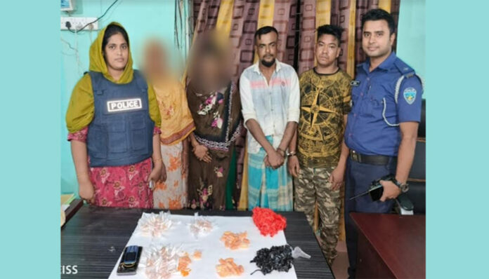 গ্রেফতাররা হলো, রোহিঙ্গা মাদককারবারি মো. জাহিদুল ইসলাম (২৯) ও মো.রফিক ওরফে বাইলা (৪০) কামরুন নাহার (২৫) বিবি আয়েশা (২৩)।