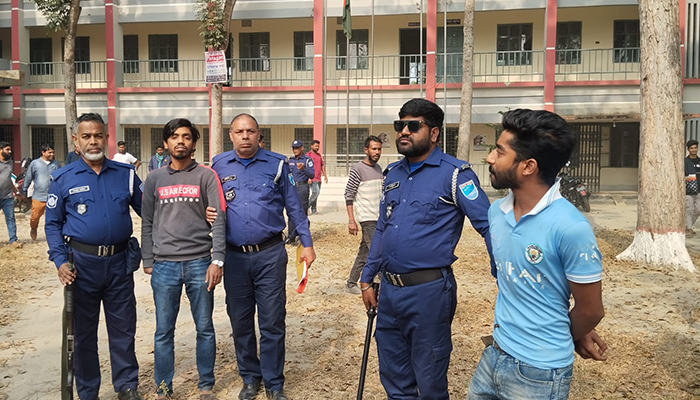 মঙ্গলবার (৭ জানুয়ারি) দুপুরের দিকে উপজেলার সরকারি বিচারপতি নুরুল ইসলাম মহাবিদ্যালয় চত্বর থেকে তাদের আটক করা হয়।
