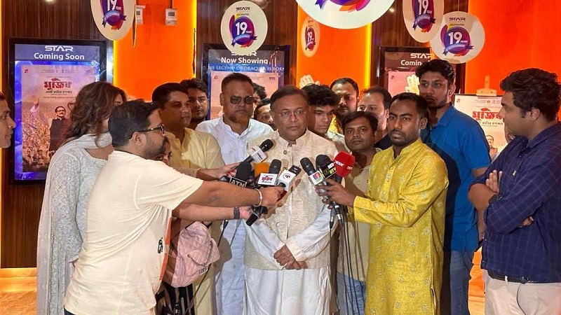 শুক্রবার (২০ অক্টোবর) রাজধানীর পান্থপথে বসুন্ধরা সিটি শপিংমলে স্টার সিনেপ্লেক্সে সকালের প্রদর্শনীতে পঞ্চমবারের মতো সিনেমাটি দেখা শেষে সাংবাদিকদের মুখোমুখি হন তথ্যমন্ত্রী।
