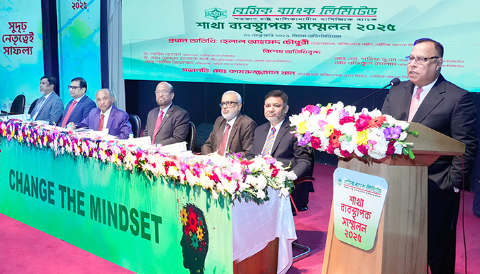 কর্পোরেট ডেস্ক: রাষ্ট্র মালিকানাধীন বেসিক ব্যাংক লিমিটেড এর শাখা ব্যবস্থাপক সম্মেলন-২০২৫ রবিবার (২ ফেব্রুয়ারি) রাজধানীর বিয়াম মিলনায়তনে অনুষ্ঠিত হয়। ব্যাংকের পরিচালনা পর্ষদের চেয়ারম্যান হেলাল আহমেদ চৌধুরী প্রধান অতিথি হিসেবে এই সম্মেলনের শুভ উদ্বোধন করেন। ব্যাংকের ব্যবস্থাপনা পরিচালক ও সিইও মোঃ কামরুজ্জামান খান অনুষ্ঠানে সভাপতিত্ব করেন এবং স্বাগত বক্তব্য দেন।