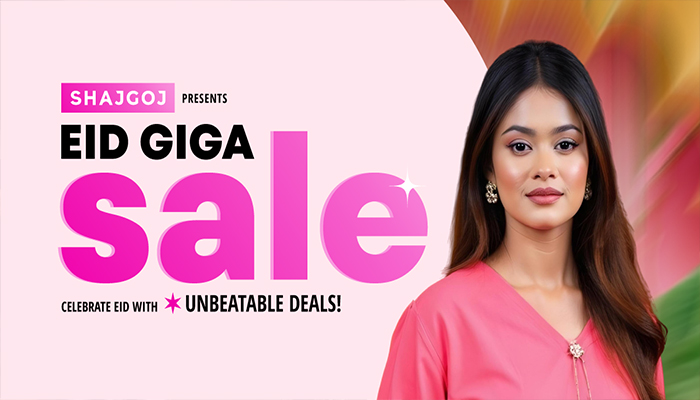 এই ঈদকে আরও আনন্দময় করতে সাজগোজ-এর ঈদ উল ফিতর গিগা সেল থেকে শপিং করুন। বিস্তারিত জানতে ভিজিট করুন shajgoj.com অথবা আজই ডাউনলোড করুন সাজগোজ-এর অ্যাপ।