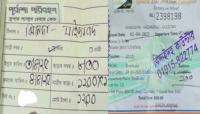 ঝিনাইদহ জেলা সংবাদদাতাঃ ঝিনাইদহের পরিবহন কাউন্টারগুলো ঈদ যাত্রায় ফিরতি টিকিটের দাম বেশী নিচ্ছে বলে যাত্রীরা অভিযোগ করেছেন। এ নিয়ে মানুষের মধ্যে ক্ষোভ বিরাজ করছে। প্রশাসনের কাছে অভিযোগ দিলেও কোন ব্যবস্থা নিচ্ছে না। ফ্যাসিষ্ট আমলের মতোই ঢাকার মালিকরা পরিবহন সেক্টর জিম্মি করে যাত্রীদের কাছ থেকে বেশি ভাড়া আদায় করছে।