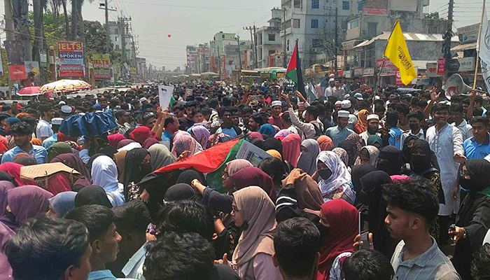 নোয়াখালী প্রতিনিধি: ফিলিস্তিনের গাজায় দখলদার ইসরায়েলি বাহিনীর নৃশংস গণহত্যা ও ধ্বংসযজ্ঞের প্রতিবাদে নোয়াখালীতে সড়ক অবরোধ করে হরতাল ও বিক্ষোভ মিছিল করেছে ছাত্র-জনতার ব্যানারে সাধারণ শিক্ষার্থীরা।