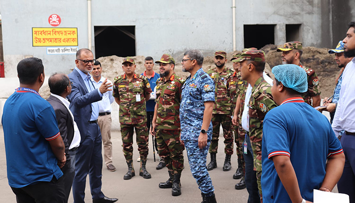 নারায়ণগঞ্জে কারখানাগুলো পরিদর্শনের সময় বাণিজ্য উপদেষ্টাকে স্বাগত জানান সেনা এডিবল অয়েল ইন্ডাষ্ট্রিজের মহাপরিচালক এয়ার কমডোর মোঃরবিউল হাসান, এএফডব্লিউসি, পিএসসি এবং ব্রিগেডিয়ার জেনারেল মোঃ শাহীন ইকবাল, এনডিসি, এএফডব্লিউসি, পিএসসি।