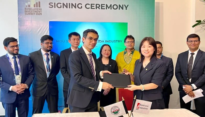 বুধবার (৯ এপ্রিল) রাজধানীর একটি হোটেলে এই নিয়ে সমঝোতা স্মারকে সই করেছেন বাংলাদেশ বিনিয়োগ উন্নয়ন কর্তৃপক্ষ (বিডা)-এর চেয়ারম্যান চৌধুরী আশিক মাহমুদ বিন হারুন ও হান্দা (ঢাকা) টেক্সটাইল কোম্পানি লিমিটেডের চেয়ারম্যান হেং জেলি।