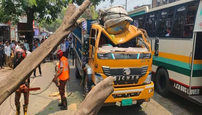 মনির হোসেন, বেনাপোল প্রতিনিধি : যশোর-বেনাপোল মহাসড়কের শার্শা উপজেলার নাভারন মাধ্যমিক বিদ্যালয়ের সামনে পুরাতন একটি কৃষ্ণচূড়া গাছ চলন্ত ট্রাকের উপর ভেঙে পড়লে ট্রাকের সামনের অংশ ক্ষতিগ্রস্ত হয়। এ সময় মূল সড়ক বন্ধ হয়ে যায়।