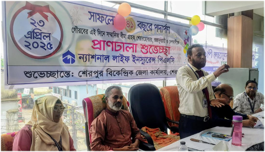 অনুষ্ঠান শেষে ৪০তম প্রতিষ্ঠাবার্ষিকী উপলক্ষে কেক কাটা হয় ন্যাশনাল লাইফ ইনস্যুরেন্স পিএলসির শেরপুর অফিসে। এসময় অফিসের স্টাফ,সেবা গ্রহীতা,স্থানীয় গণ্যমান্য ব্যক্তিবর্গ ও সাংবাদিকরা উপস্থিত ছিলেন।