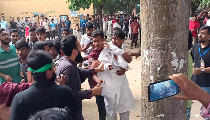 বুধবার (৩০ এপ্রিল) বিকেল সোয়া পাঁচটার দিকে শহরের পৌর পার্কের টিটু মিলনায়তনের সামনে এ ঘটনা ঘটে। প্রত্যক্ষদর্শীরা জানান, সমাবেশ চলাকালে দুই পক্ষের মধ্যে তিন দফায় মারামারি ও ধাওয়া-পাল্টা ধাওয়ার ঘটনা ঘটে। এতে উভয়পক্ষের বেশ কয়েকজন আহত হন। তবে আহতদের নাম-পরিচয় তাৎক্ষণিকভাবে জানা যায়নি। এসময় পুলিশের উপস্থিতি থাকলেও তারা কোনো ধরনের হস্তক্ষেপ না করায় সমালোচনা সৃষ্টি হয়েছে।