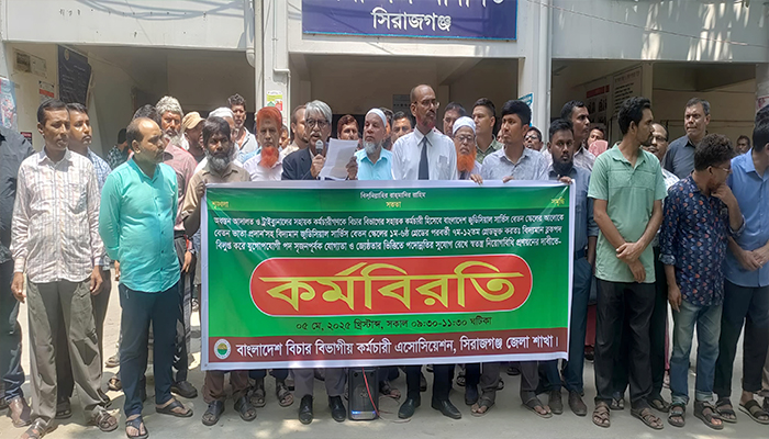 সোমবার (৫ মে) সকাল ৯টা ৩০ মিনিট থেকে বেলা ১১টা ৩০ মিনিট পর্যন্ত বাংলাদেশ বিচার বিভাগীয় কর্মচারি এসোসিয়েশনের ব্যানারে সিরাজগঞ্জ জেলা জজ আদালত প্রাঙ্গণে এই কর্মসূচি পালিত হয়।