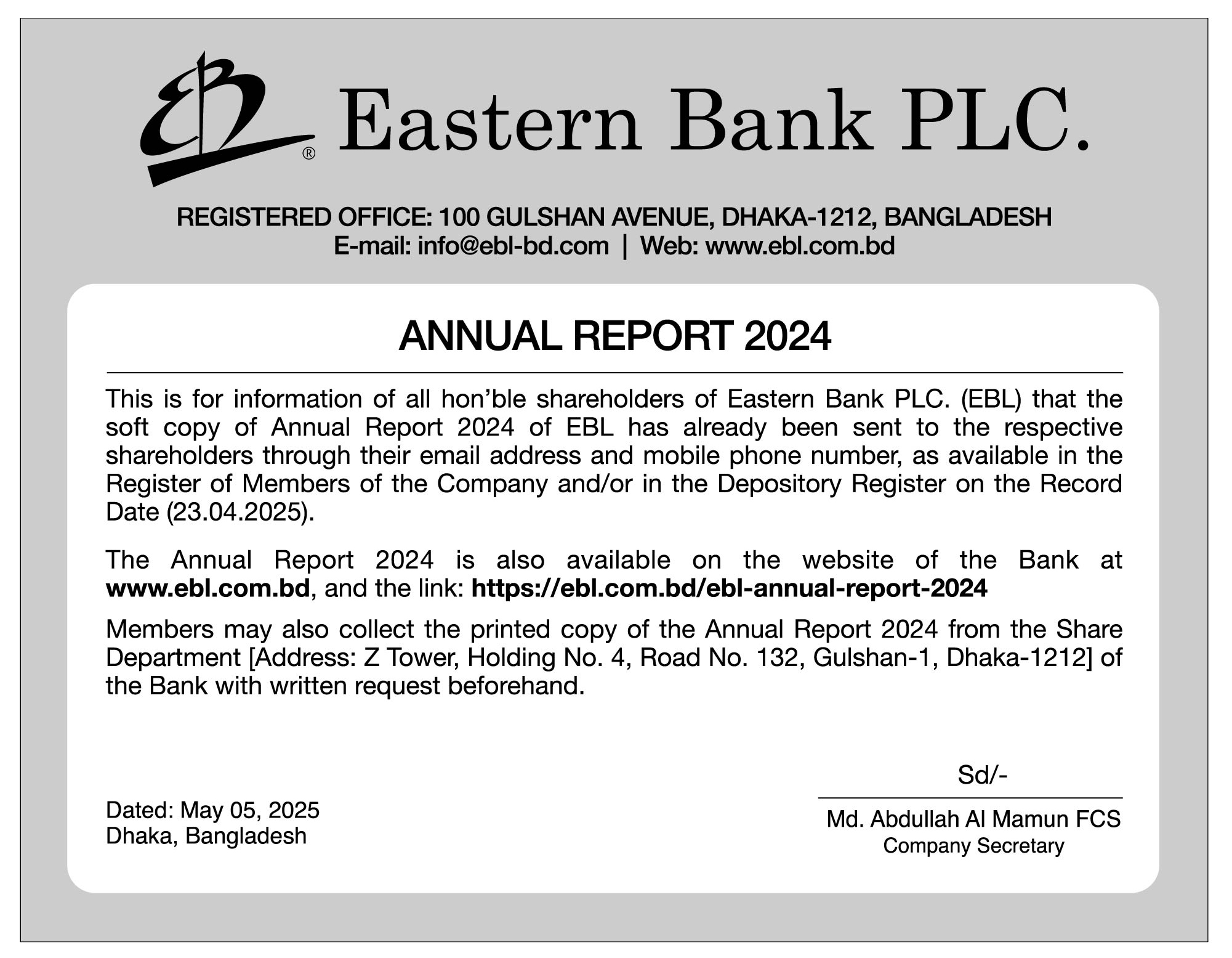 Annual Report 2024 of Eastern Bank PLC.