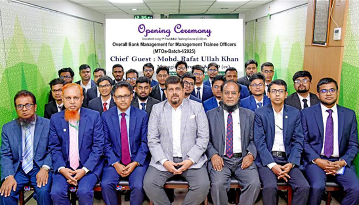 প্রধান অতিথির বক্তব্যে ব্যবস্থাপনা পরিচালক মোঃ রাফাত উল্লা খান নতুন যোগদানকৃত ম্যানেজমেন্ট ট্রেইনি অফিসারদের অভিনন্দন জানিয়ে বলেন, সততা, নিষ্ঠা, একাগ্রতা, কর্মদক্ষতার মাধ্যমে একজন আদর্শ ব্যাংকার হওয়ার জন্য বুনিয়াদী প্রশিক্ষণ অত্যন্ত গুরুত্বপূর্ণ। আধুনিক এবং ইসলামী শরীয়াহ্ভিত্তিক ব্যাংকিংয়ের বিভিন্ন দিক সম্পর্কে পরিষ্কারভাবে জ্ঞান অর্জন এবং ভবিষ্যতে নেতৃত্ব দিতে নিজেকে গড়ে তোলার জন্য আনন্দ ও মনোযোগের সাথে প্রশিক্ষণ গ্রহনের জন্য তিনি এমটিওদের আহ্বান জানান। উন্নত নৈতিক চারিত্রিক গুণাবলী অর্জন এবং দায়িত্বশীলতার সাথে কর্মসম্পাদন করে ব্যাংককে অনন্য উচ্চতায় নিয়ে যাওয়ার জন্য ব্যবস্থাপনা পরিচালক এমটিওদেরকে পরামর্শ দেন।