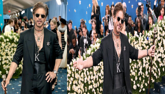 জানা যায়, নিউ ইয়র্কের ম্যানহাটনে আয়োজিত এবারের মেট গালায় থিম ছিল ‘সুপারফাইন: টেইলরিং ব্ল্যাক স্টাইল’। আর সেই থিমের নিজস্ব ব্যাখ্যা নিয়ে হাজির হয়েছিলেন শাহরুখ। ডিজাইনার সব্যসাচী মুখার্জির তৈরি করা মুর্শিদাবাদি সিল্কের মোঘল অনুপ্রাণিত কোর্ট জ্যাকেট, কালো ট্রাউজার ও খোলা ক্রেপ দে চাইন শার্টে তিনি ছিলেন নজরকাড়া। গলায় ছিল হীরায় মোড়া বিশাল ‘কে’পেনড্যান্ট আর একগুচ্ছ জুয়েলড চেইন, হাতে ছিল বাঘের মাথা বসানো একটি ঝকঝকে ছড়ি।