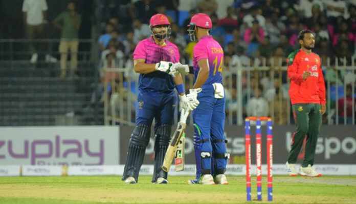 ৩টি চার ও ২টি ছক্কায় হৃদয় ২৪ বলে ৪৫, ২টি চার ও ১টি ছক্কায় শান্ত ১৯ বলে ২৭ এবং ১টি চার ও ২টি ছক্কায় জাকের ৬ বলে ১৮ রানে আউট হন। শেষ দিকে শামীম হোসেন ৬ ও রিশাদ হোসেন ২ রানে অপরাজিত থাকেন।