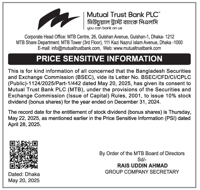 Price Sensitive Information of Mutual Trust Bank PLC.