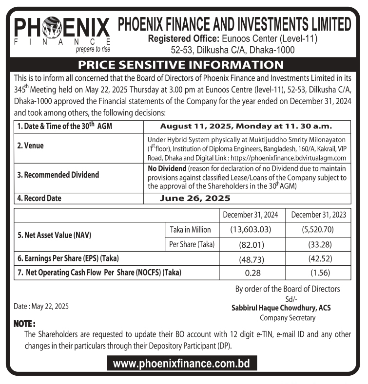 Homeপ্রাইস সেনসিটিভ ইনফরমেশনPrice Sensitive Information of Phoenix Finance and Investments Ltd.
