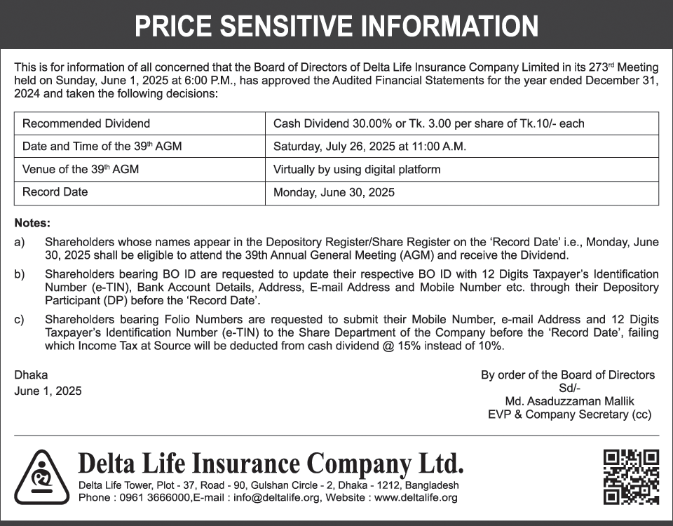 Price Sensitive Information of Delta Life Insurance Company Ltd.