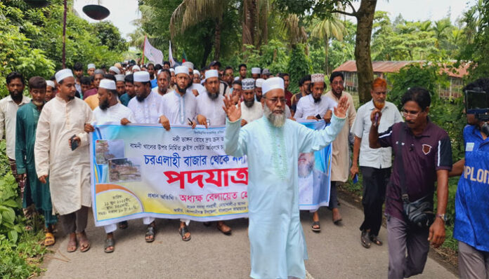 বুধবার (১১ জুন) দুপুরের দিকে উপজেলার চরএলাহী বাজারের কাছে নদী ভাঙ্গন কবলিত এলাকায় ওই পদযাত্রা অনুষ্ঠিত হয়।