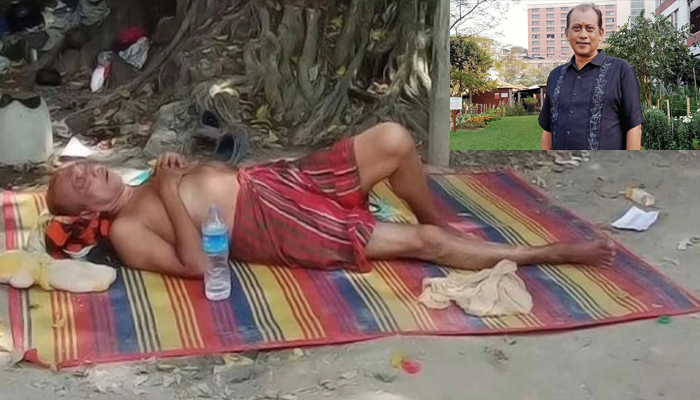ভিডিওতে দেখা যায়, ময়মনসিংহের গফরগাঁওয়ে মুখী শাহ্ মিসকিন মাজারের কাছে একটি রাস্তার পাশে গাছের নিচে খালি গায়ে নিঃসঙ্গভাবে শুয়ে আছেন তিনি।