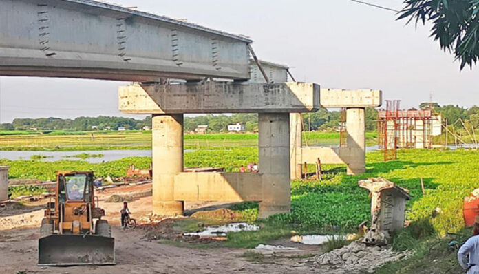 সরেজমিন রোববার (১৫ জুন) স্থানীয়দের সঙ্গে কথা বলে জানা গেছে, ৩১৫ মিটার দৈর্ঘ্য এ সেতুটির কাজে নিম্নমানের রেডিমিক্স ব্যবহারের কারণে গেল বছরের মে মাসে ৩০লাখ টাকা ব্যয়ে নির্মিত ৪৫ মিটার দৈর্ঘ্য ১২০ টন ওজনের একটি পিসি গার্ডার ওপরে উঠানোর আগে নির্মাণাধীন অবস্থাতেই ভেঙে যায়। বর্তমান ঠিকাদারি প্রতিষ্ঠান জান্নাত কনস্ট্রাকশন লিমিটেড ইতিমধ্যেই ৪টি পিসি গার্ডার উত্তোলনের কাজ সম্পন্ন করেছে। যার গুণগত মান নিয়েও গুরুতর অভিযোগ তুলেছেন অনেকেই। এদিকে ওই গার্ডার নির্মাণে অজ্ঞাত কারণে সেতুস্থলে মিক্সিং প্লান্ট না করে অন্য জায়গা থেকে রেডিমিক্স এনে কাজ করায় নানা অনিয়মের অভিযোগ ওঠেছে।