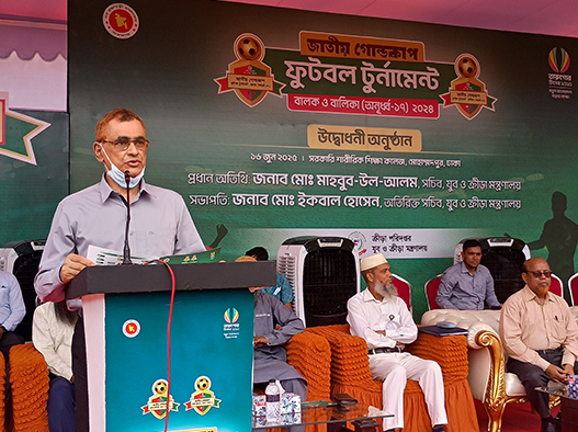 স্পোর্টস ডেস্ক : জাতীয় গোল্ডকাপ ফুটবল টুর্নামেন্ট বালক ও বালিকা (অনূর্ধ্ব -১৭) এর জাতীয় আসরের পর্দা উঠলো আজ। সোমবার (১৬ জুন) সকালে মোহাম্মদপুর সরকারি শারীরিক শিক্ষা কলেজ মাঠে এই প্রতিযোগিতার উদ্বোধন করেন যুব ও ক্রীড়া মন্ত্রণালয়ের সচিব মো: মাহবুব-উল-আলম।