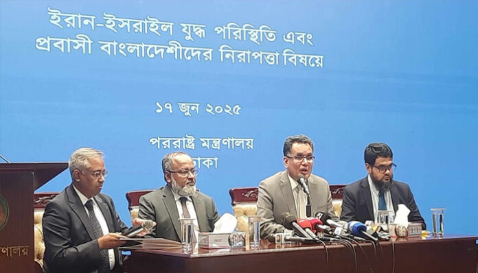 মঙ্গলবার (১৭ জুন) পররাষ্ট্র মন্ত্রণালয়ে ইরান-ইসরায়েল যুদ্ধ পরিস্থিতি এবং প্রবাসী বাংলাদেশিদের নিরাপত্তা বিষয়ে আয়োজিত এক সংবাদ সম্মেলনে এসব তথ্য জানান ভারপ্রাপ্ত পররাষ্ট্রসচিব রুহুল আলম সিদ্দিকী।