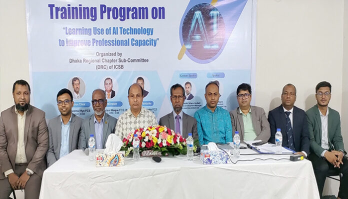 কর্পোরেট ডেস্ক: ইনস্টিটিউট অব চার্টার্ড সেক্রেটারীজ অব বাংলাদেশ (আইসিএসবি) শনিবার (২১ জুন) আইসিএসবি-এর প্রধান কার্যালয়ে ‘Learning Use of Artificial Intelligence (Al) Technology to Improve Professional Capacity’ শীর্ষক এক প্রশিক্ষণ কর্মসূচির আয়োজন করে, যার মূল উদ্দেশ্য চার্টার্ড সেক্রেটারীগণের পেশাগত দক্ষতা বৃদ্ধিতে কৃত্রিম বুদ্ধিমত্তার প্রয়োগ ও সংশ্লিষ্ট প্রশিক্ষণ প্রদান।