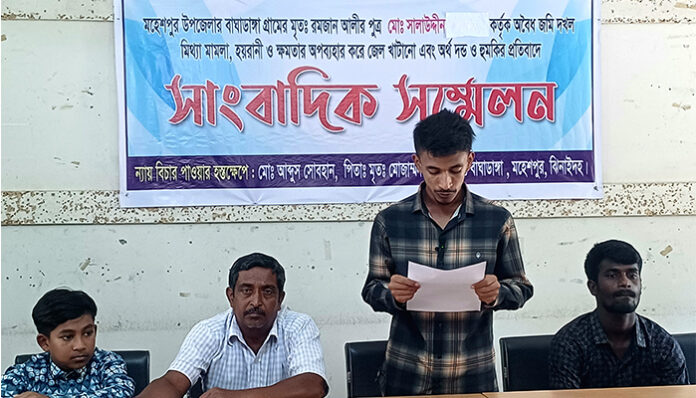 ঝিনাইদহ জেলা সংবাদদাতা: ঝিনাইদহের মহেশপুরে সহকারী জজের বিরুদ্ধে জমি দখলের চেষ্টা ও ক্ষমতার অপব্যবহারের অভিযোগ তুলে সংবাদ সম্মেলন করেছেন এক ভুক্তভোগী কৃষক।