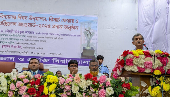 সোমবার (২৩ জুন) দুপুরের দিকে মুহাম্মদ রুহুল আমিন অডিটোরিয়ামে নোয়াখালী বিজ্ঞান ও প্রযুক্তি বিশ্ববিদ্যালয়ের (নোবিপ্রবি) ১৯তম বিশ্ববিদ্যালয় দিবস উদযাপন, রিসার্চ ফেয়ার এবং একাডেমিক এক্সিলেল অ্যাওয়ার্ড অনুষ্ঠানে প্রধান অতিথির বক্তব্যে তিনি এসব কথা বলেন অনুষ্ঠানে সভাপতিত্ব করেন বিশ্ববিদ্যালয়ের উপাচার্য অধ্যাপক ড. মুহাম্মদ ইসমাইল।