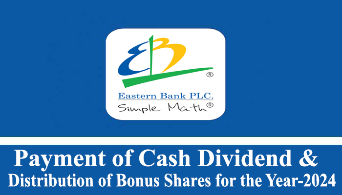 Homeপ্রাইস সেনসিটিভ ইনফরমেশনPayment of Cash Dividend & Distribution of Bonus Shares for the Year-2024... প্রাইস সেনসিটিভ ইনফরমেশন Payment of Cash Dividend & Distribution of Bonus Shares for the Year-2024 of Eastern Bank PLC. June 23, 2025 - 7:32 pm 41 Print Facebook Twitter Linkedin Whatsapp Messenger Email Credit Rating Information of Square Pharmaceuticals PLC. প্রাইস সেনসিটিভ ইনফরমেশন Ujjal Hossain - December 11, 2025 0 Read more Notice of the 21st Annual General Meeting of Navana CNG Ltd. প্রাইস সেনসিটিভ ইনফরমেশন Ujjal Hossain - December 7, 2025 0 Read more Notice of The 39th Annual General Meeting of Navana Pharmaceuticals PLC. প্রাইস সেনসিটিভ ইনফরমেশন Ujjal Hossain - December 7, 2025 0 Read more এ সম্পর্কিত আরও পড়ুন প্রাইস সেনসিটিভ ইনফরমেশন Credit Rating Information of Square Pharmaceuticals PLC. December 11, 2025 প্রাইস সেনসিটিভ ইনফরমেশন Notice of the 21st Annual General Meeting of Navana CNG Ltd. December 7, 2025 প্রাইস সেনসিটিভ ইনফরমেশন Notice of The 39th Annual General Meeting of Navana Pharmaceuticals PLC. December 7, 2025 প্রাইস সেনসিটিভ ইনফরমেশন Notice of The 21st Annual General Meeting of Golden Harvest Agro Industries Ltd. December 6, 2025 সর্বশেষ সংবাদ ওসমান হাদির অবস্থা আশঙ্কাজনক: মেডিকেল বোর্ড জাতীয় Ujjal Hossain - December 13, 2025 0 কর্পোরেট সংবাদ ডেস্ক : ইনকিলাব মঞ্চের মুখপাত্র ও ঢাকা-৮ আসনের সম্ভাব্য স্বতন্ত্র প্রার্থী শরিফ ওসমান হাদিকে রাজধানীর এভারকেয়ার হাসপাতালে চিকিৎসা দেওয়া হচ্ছে। সর্বশেষ স্বাস্থ্যগত... Read more সন্ত্রাসী দমনে ‘অপারেশন ডেভিল হান্ট ফেইজ-২’ চালু করা হবে: স্বরাষ্ট্র উপদেষ্টা জাতীয় Ujjal Hossain - December 13, 2025 0 কর্পোরেট সংবাদ ডেস্ক: আসন্ন জাতীয় নির্বাচনে শান্তিপূর্ণ পরিবেশ নিশ্চিতকরণ, আইনশৃঙ্খলা পরিস্থিতি নিয়ন্ত্রণ ও ফ্যাসিস্ট সন্ত্রাসীদের দমনে অবিলম্বে ‘অপারেশন ডেভিল হান্ট ফেইজ-২’ চালু করা হবে... Read more ছুটির দিনেও খোলা থাকবে রিটার্নিং ও সহকারী রিটার্নিং অফিসারের কার্যালয় জাতীয় Ujjal Hossain - December 13, 2025 0 কর্পোরেট সংবাদ ডেস্ক: আসন্ন ত্রয়োদশ জাতীয় সংসদ নির্বাচনকে সামনে রেখে সাপ্তাহিক ও সরকারি ছুটির দিনেও খোলা থাকবে রিটার্নিং ও সহকারী রিটার্নিং অফিসারের কার্যালয়। শনিবার (১৩... Read more কুইন’স কমনওয়েলথ রচনা প্রতিযোগিতায় স্বর্ণ-রৌপ্যসহ ৭ অ্যাওয়ার্ড জয় বাংলাদেশের শিক্ষার্থীদের কর্পোরেট সংবাদ Ujjal Hossain - December 13, 2025 0 কর্পোরেট সংবাদ ডেস্ক : কুইন’স কমনওয়েলথ রচনা প্রতিযোগিতা ২০২৫ -এ স্বর্ণ, রৌপ্য ও ব্রোঞ্জসহ সাতটি অ্যাওয়্যার্ড জিতে নিয়েছে গ্লেনরিচ ইন্টারন্যাশনাল স্কুল, উত্তরার শিক্ষার্থীরা। এ... Read more বেনাপোল সীমান্তে ব্যাপক নজরদারি ও তল্লাশি কার্যক্রম চালাচ্ছে বিজিবি সারাদেশ Ujjal Hossain - December 13, 2025 0 মনির হোসেন, বেনাপোল প্রতিনিধি: রাজধানীর বিজয়নগর এলাকায় ঢাকা–৮ আসনের সম্ভাব্য স্বতন্ত্র প্রার্থী ও ইনকিলাব মঞ্চের মুখপাত্র শরিফ ওসমান হাদি গুলিবিদ্ধের ঘটনার পর সীমান্ত এলাকায়... Read more হাদিকে গুপ্ত বাহিনী নিষিদ্ধ বাহিনী হামলা করেছে: শিবির সেক্রেটারি রাজনীতি Ujjal Hossain - December 13, 2025 0 নোয়াখালী প্রতিনিধি: হাদিকে গুপ্ত বাহিনী নিষিদ্ধ বাহিনী হামলা করেছে বলে মন্তব্য করেছেন বাংলাদেশ ইসলামী ছাত্রশিবিরের সেক্রেটারি জেনারে