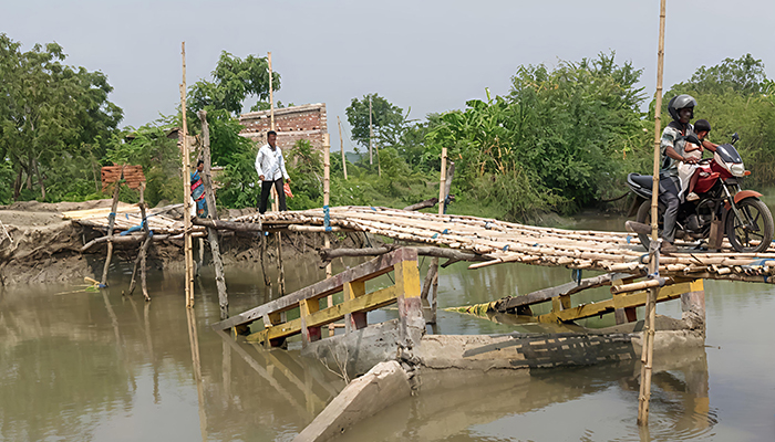 মরিচ্চাপ নদীতে সেতু ধসে পড়া স্থানে অস্থায়ীভাবে নির্মাণ করেছে বাঁশের সাঁকো।