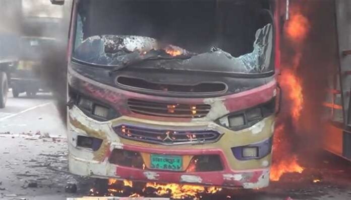 গাজীপুর প্রতিনিধি : গাজীপুরের কোনাবাড়িতে আজও সকাল থেকেই বেতন বাড়ানোর দাবীতে শ্রমিক অসন্তোষ দেখা দিয়েছে। শ্রমিকরা দুটি যাত্রীবাহী বাসে আগুন দেয় বিক্ষুব্ধরা। ঘটনায় ৩ জনকে আটক করা হয়েছে ।