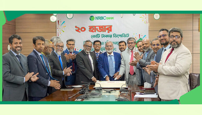 কর্পোরেট ডেস্ক: এনআরবিসি ব্যাংকে গ্রাহকদের জমাকৃত আমানতের পরিমান ২০ হাজার কোটি টাকার মাইলফলক অতিক্রম করেছে। সোমবার (৩০ জুন) এনআরবিসি ব্যাংকের আমানতের পরিমান দাঁড়িয়েছে ২০ হাজার ১৪ কোটি টাকা। ব্যাংকের প্রতি গ্রাহকদের আস্থা ও বিশ্বাসের প্রতিফলনের এই দিনটিকে উদযাপন করেছে এনআরবিসি ব্যাংক।