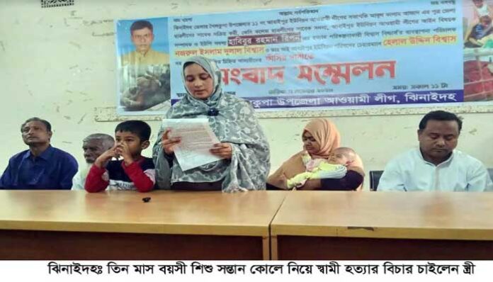 মঙ্গলবার দুপুরে ঝিনাইদহ প্রেসক্লাবে নিহত রিপনের স্ত্রী তানিয়া খাতুন সংবাদ সম্মেলনে লিখিত বক্তব্য পাঠ করেন। এ সময় তার কোলে তিনমাস বয়সী শিশু সন্তান ছিলেন।