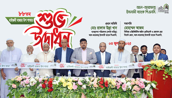 কর্পোরেট ডেস্ক: নোয়াখালীর মাইজদী বাজারে আল-আরাফাহ্ ইসলামী ব্যাংক পিএলসির ৮৮তম উপশাখার কার্যক্রম আনুষ্ঠানিকভাবে শুরু হয়েছে। বৃহস্পতিবার (৩ জুলাই) ব্যাংকের ব্যবস্থাপনা পরিচালক (চলতি দায়িত্ব) মোঃ রাফাত উল্লা খান প্রধান অতিথি হিসেবে শাখাটি উদ্বোধন করেন।