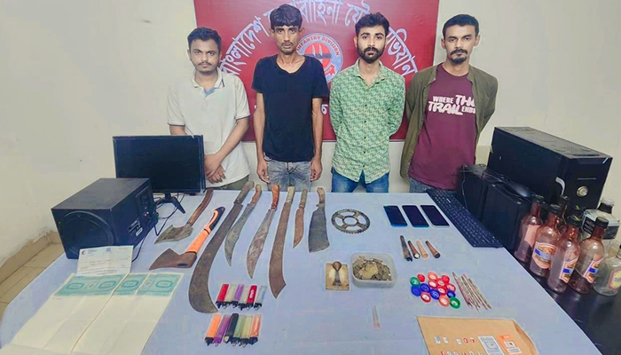 আটককৃতরা হলেন- আবির হোসেন বিদ্যুৎ (২৭), ওয়াজ মন্ডল (৩৬), মাসুম আলম নায়েম (২৭) ও মেহেদী হাসান (২৩)। এদের সবাই কিশোর গ্যাং চক্রের সক্রিয় সদস্য বলে জানা গেছে।