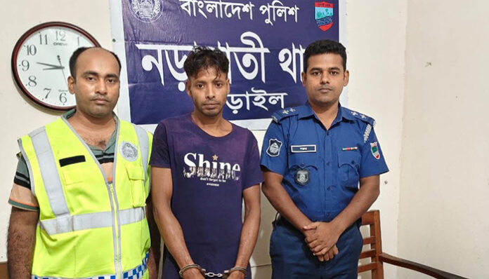 মঙ্গলবার (৮ জুলাই) নড়াগাতী থনাধীন ৪ নং মাউলি ইউনিয়নের অন্তর্গত ধৃত আসামীর বসত বাড়ি হতে তাকে আটক করা হয়।