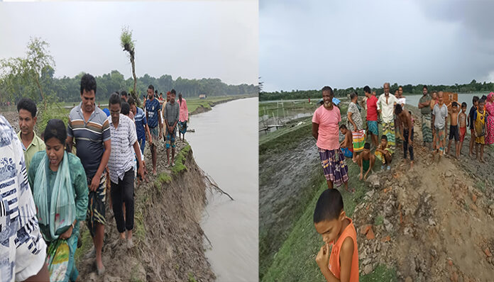 শুক্রবার (১১ জুলাই) সকালে দেখা যায়, নদীর তীব্র স্রোতে বিস্তীর্ণ এলাকা নদীগর্ভে বিলীন হওয়ার পথে রয়েছে। গত কয়েকদিনের বর্ষনে কপোতক্ষ বাঁধের বেশ কিছু অংশে ভাঙ্গানে বিলীন হয়েছে।
